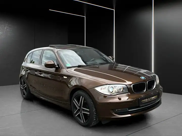 Entdecken Sie diesen gepflegten BMW 120 Limousine aus dem Jahr 2009. Der 4-Zylinder Benzinmotor mit 170 PS und 1995 ccm Hubraum bietet sportliche Fahrleistungen mit Heckantrieb. Die braune Metallic-Lackierung verleiht dem Fahrzeug eine elegante Optik. Im Innenraum erwarten Sie Stoffsitze, elektrisch verstellbare und beheizbare Sitze sowie eine Automatik-Klimaanlage für optimalen Komfort. Die Ausstattung umfasst ein Navigationssystem, Multifunktionslenkrad, Start-Stopp-System und Tempomat. Für zusätzliche Sicherheit sorgen Front- und Seitenairbags, ABS, ESP sowie Parksensoren vorne und hinten. Das Sportpaket und das Schiebedach runden das Angebot ab. Der Wagen verfügt über eine abnehmbare Anhängerkupplung mit einer gebremsten Anhängelast von 1200 kg.