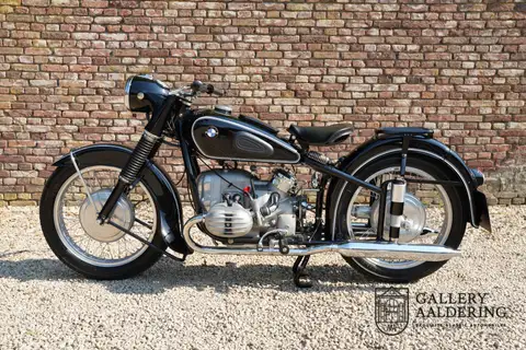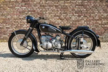 It is believed that this matching-numbers R51/3 was delivered new to The Netherlands, as it comes with an old Dutch registration document dated 1961. The current vendor purchased the machine from the Belgian BMW specialists Oldlima in 2008, at which time it had covered a mere 25 kilometres since a full restoration. The BMW has been on static display since acquisition and is presented in magnificent condition; highly sought-after and collectible, it comes with old NL registration documents and a Belgian Demande d'Immatriculation.