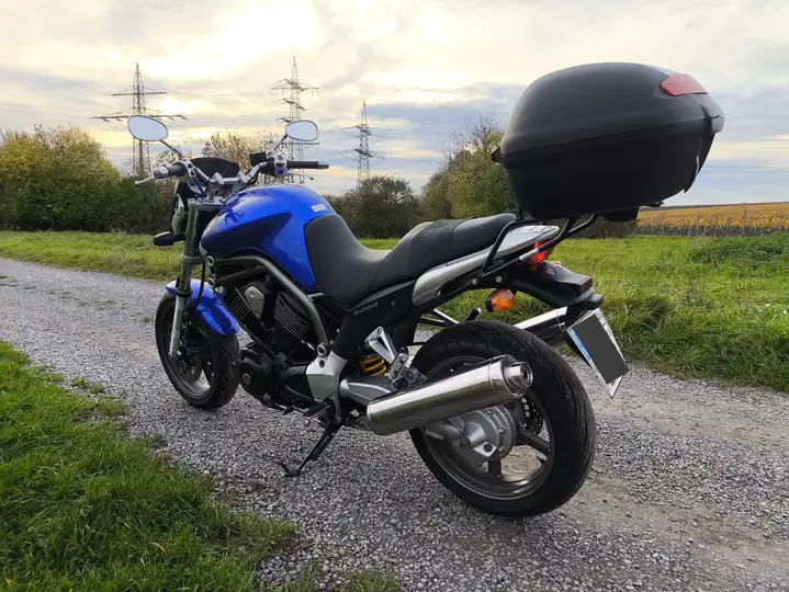 Das Motorrad hat ein Saisonkennzeichen - April bis Oktober. Das Top Case von Hepco&Becker wird mit verkauft.